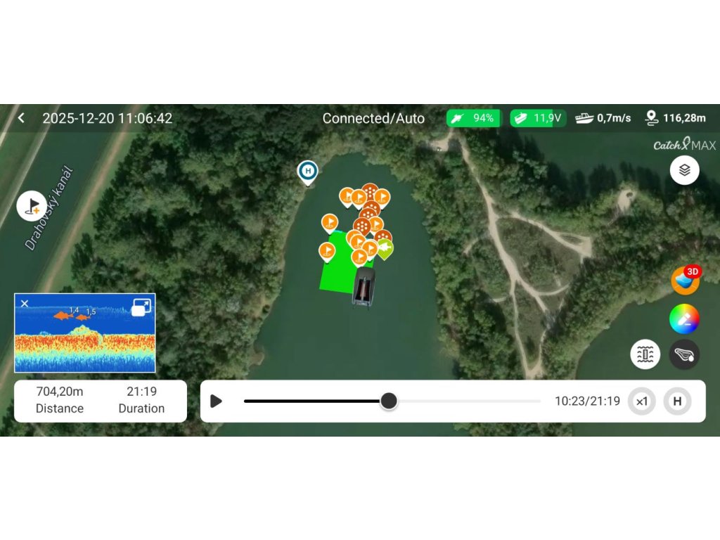 Presnosť GPS : Poloha s presnosťou až 1 meter pre presné uvoľnenie a skenovanie návnady.